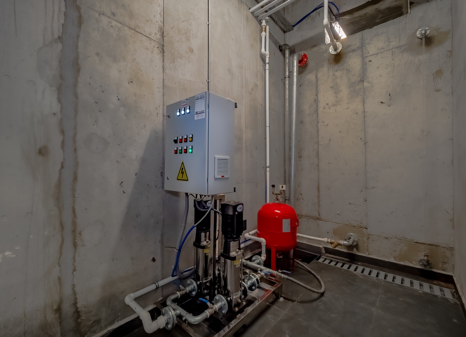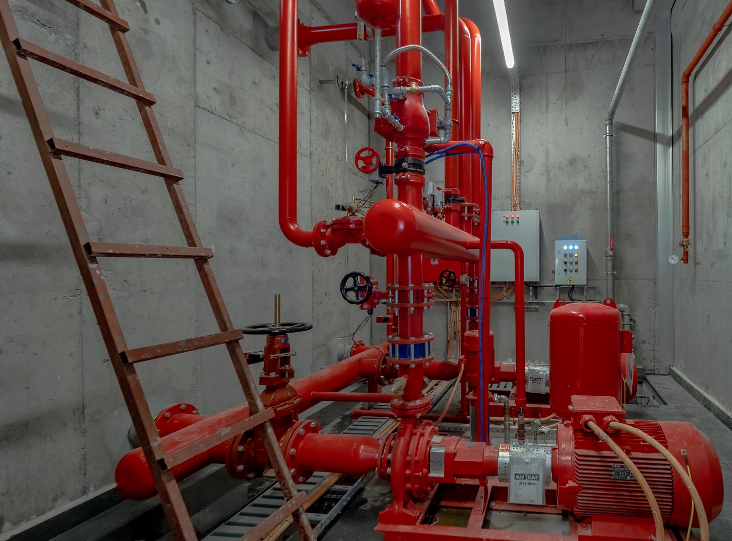 Yangın sprinkler tesisatı, yangın dolapları ve yangın pompa grubu bulunmaktadır.